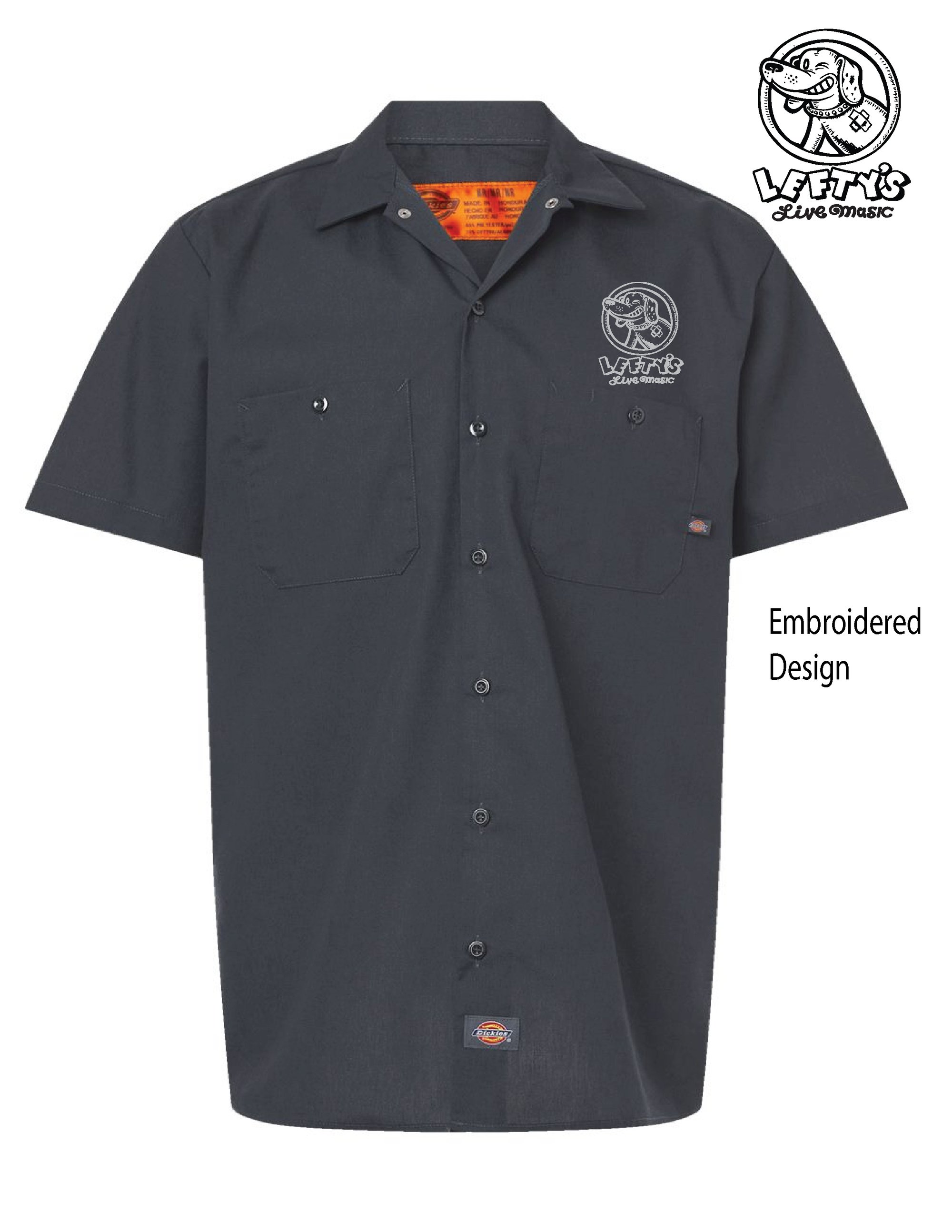 Dickies - Men's Industrial Short Sleeve Work Shirt Hex chest pocket with pencil stall Embroidered Design